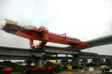 自2008年12月10日京滬項(xiàng)目部成功架設(shè)第一孔箱梁以來,項(xiàng)目部多次掀起趕工高潮,提出"決戰(zhàn)搶工期、決勝保節(jié)點(diǎn)"的攻堅(jiān)口號,通過技術(shù)革新、工藝改進(jìn)、加強(qiáng)設(shè)備保養(yǎng)維護(hù),不斷攻克技術(shù)瓶頸,成功將架橋機(jī)過提籃拱拆解安裝時(shí)間由10天縮短到6天,架橋機(jī)每孔箱梁架設(shè)時(shí)間由8.5小時(shí)壓縮到3.5小時(shí),大大提高了箱梁架設(shè)工效,創(chuàng)造出一個(gè)月內(nèi)架橋機(jī)兩次過提籃拱、架設(shè)箱梁60片的輝煌成績,且各項(xiàng)安全、進(jìn)度、質(zhì)量指標(biāo)檢查均符合標(biāo)準(zhǔn),獲得各界的一致好評。