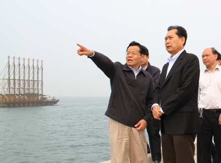 3月31日,廣西壯族自治區(qū)副主席陳武一行在廣西北部灣國際集團董事長葉時湘、中國石油國際事務(wù)部總經(jīng)理張軍的陪同下,到欽州港大欖坪保稅港區(qū)3-8號泊位碼頭工程考察。
