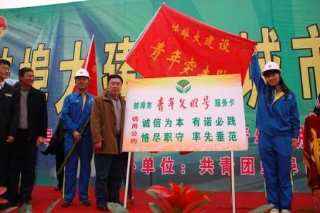 本次青年文明號(hào)優(yōu)質(zhì)服務(wù)示范月活動(dòng)共在蚌埠市共成立了8家青年文明號(hào)集體和8支青年突擊隊(duì)?;顒?dòng)期間,各青年文明號(hào)集體將圍繞"蚌埠大建設(shè)"開展比、學(xué)、趕、幫、超等活動(dòng),組織與重點(diǎn)工程青年突擊隊(duì)結(jié)對(duì)幫扶,進(jìn)行大建設(shè)大討論。
