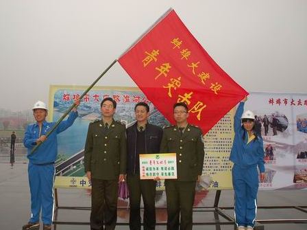 蚌埠項(xiàng)目部青年突擊隊(duì)積極參與主題為"蚌埠大建設(shè),城市新生活"的蚌埠市青年文明號(hào)優(yōu)質(zhì)服務(wù)示范月活動(dòng),并于4月18日作為交通系統(tǒng)代表,從蚌埠市委常委、常務(wù)副市長(zhǎng)張孝成手中接過(guò)"蚌埠大建設(shè)青年突擊隊(duì)"隊(duì)旗。
