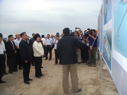 福建省領導一行視察了項目施工現(xiàn)場,認真聽取了有關(guān)湄洲灣港項目建設規(guī)劃和東吳港區(qū)施工進展的介紹,高度肯定了有關(guān)各方自開工以來所取得的成績,并勉勵大家要團結(jié)奮進,克服困難,再創(chuàng)佳績;在保證安全和質(zhì)量的基礎上,力爭提前完成港區(qū)建設,為海西經(jīng)濟快速發(fā)展再立新功。