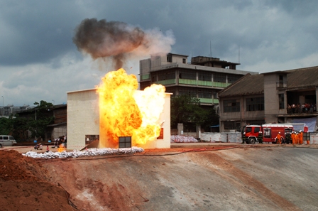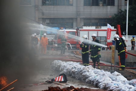 本次演習是中交股份廣泛深入開展"安全生產(chǎn)月"的一項重要活動,演習結(jié)合華南地區(qū)臺風多發(fā)的實際,針對目前社會關注的坍塌問題,共模擬防臺、圍堰防洪、塔吊加固、基坑坍塌、天然氣爆炸失火及人員疏散等六個場景。