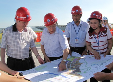 廖汝捷、郭開農(nóng)一行冒著酷暑到散貨工地和寶滿工地碼頭前沿慰問,為廣大員工送上王老吉、冬瓜茶等防暑清涼飲料。他們現(xiàn)場聽取了有關湛江港發(fā)展規(guī)劃、施工進度、質量、安全的匯報,充分肯定了項目部所取得的成績,高度贊揚了項目部為湛江港、湛江人民忘我工作的高尚情操,為提高湛江港的市場競爭能力做出的積極貢獻。