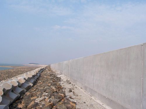 湛江鋼鐵基地項目部在施工中嚴格貫徹落實既定施工方案,尤其在模板投入方面始終堅持"質量為重、經濟為輔"的管理理念,整個北護岸擋墻工程投入大型鋼模板2套,在施工中先后開展典型施工、專題討論、技術改進等活動,混凝土外觀質量得到業(yè)主、質監(jiān)站、監(jiān)理一致好評。