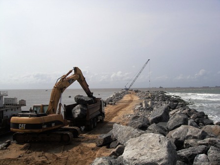 7月26日,尼日利亞拉各斯防波堤修復工程項目部正式收到西堤最終版施工圖紙,隨即迅速組織全面開展西堤施工。