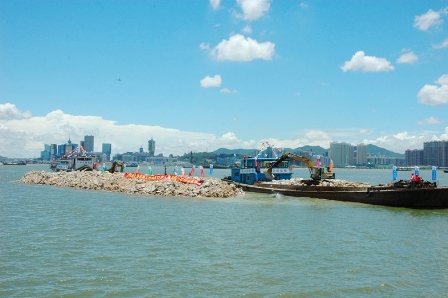 港珠澳大橋珠澳口岸人工島堤心石順利出水