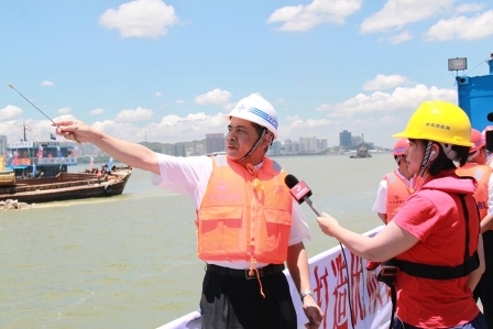 8月3日中午,港珠澳大橋珠澳口岸人工島北標段堤心石拋填順利露出水面,將整個工程的施工推向了一個高潮。珠海電視臺等媒體對整個出水過程進行了現(xiàn)場跟蹤報道。