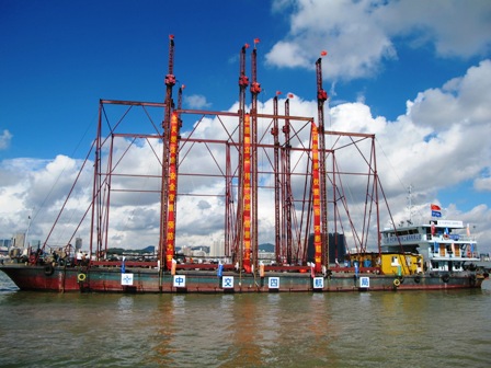 珠澳口岸人工島填海工程開始水上插板施工