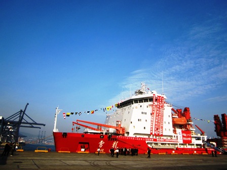 11月11日,中國(guó)南極科學(xué)考察船"雪龍?zhí)?從四航局承建的鹽田西港碼頭3號(hào)泊位出發(fā),開(kāi)始第27次赴南極科考旅程,國(guó)家海洋局和深圳市政府共同舉行隆重的歡送儀式。