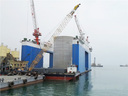 廣西欽州港30萬噸級石油碼頭工程位于欽州灣三墩島南側(cè),采用重力墩式結(jié)構(gòu),共由10個墩、18個特大圓筒組成,碼頭總長541.65米,兩側(cè)可停泊30萬噸原油船,設(shè)計年通過原油能力為2000萬噸,工程預計于2011年11月竣工投產(chǎn)。