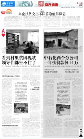 6月24日,中共廣東省委機(jī)關(guān)報(bào)《南方日?qǐng)?bào)》在第六版整版刊登《記者觀察——央企扶貧交出不同答卷值得深思》,將四航局作為央企駐粵單位“雙到”扶貧正面典型(正、反面典型各兩個(gè))。