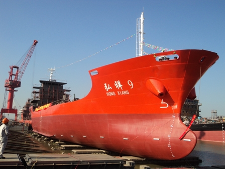 7月28日上午,航通公司建造的1艘3700立方米全壓式液化氣船在新會順利下水。