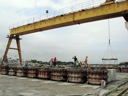 該分項共需預制12噸立體方塊4054件,自 2010年4月29日開始預制以來,項目部克服了資金緊張、建筑材料短缺、惡劣天氣等困難,加強人員、機械、物資的調配,群策群力,高效完成了預制施工任務。