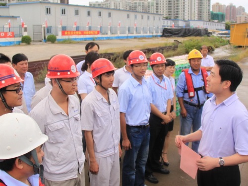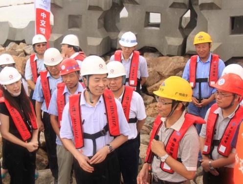 甘霖一行冒雨親臨施工現(xiàn)場,聽取了工程介紹,視察了工程進(jìn)展情況,并為港珠澳大橋人工島建設(shè)者送上清涼飲料,勉勵(lì)大家再接再厲,為港珠澳大橋的建設(shè)貢獻(xiàn)力量。