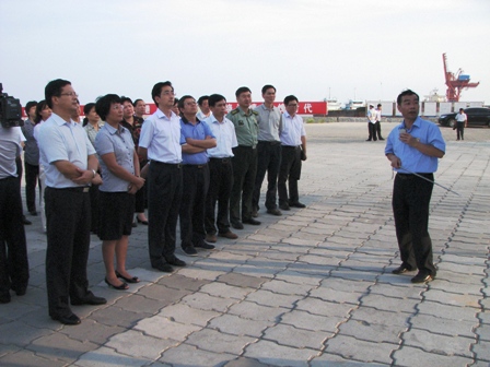考察團一行聽取了謝毅總經理的匯報,詳細了解了港區(qū)規(guī)劃、碼頭建設等情況,并對即將完工的403—407號泊位碼頭建設情況表示滿意。