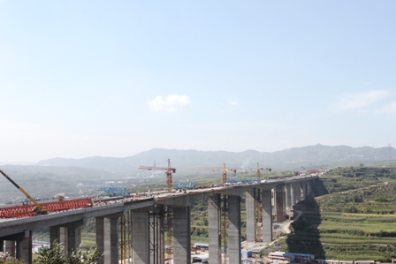 該橋為全線控制性工程,大橋全長860米,主橋為65+2×120+65m預(yù)應(yīng)力砼連續(xù)剛構(gòu),是山西省首座雙向六車道大跨徑橋梁。自開工以來,太陽八標(biāo)項目部克服征拆難、工期緊、技術(shù)難度大等不利因素,精心組織,不斷優(yōu)化施工方案,加大人力、物力及設(shè)備投入,同時與設(shè)計院和業(yè)主積極溝通,通過變更樁長、合攏段施工順序等措施切實加快施工進(jìn)度,受到山西省交通廳和業(yè)主的充分肯定。