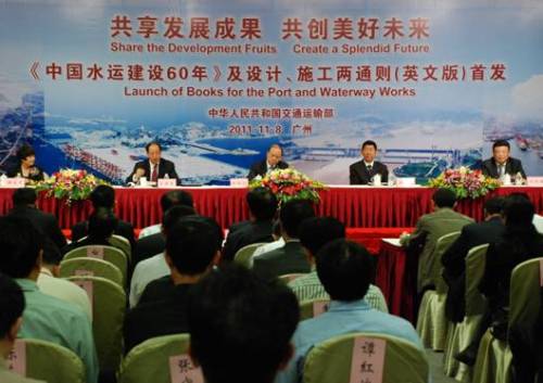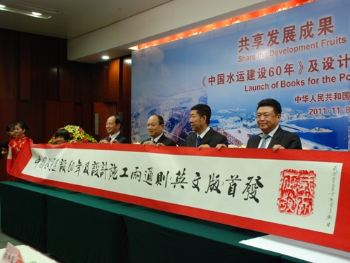 11月8日,由交通運輸部主辦,中交股份和中國港灣承辦,四航局協(xié)辦的“《中國水運建設60年》及設計、施工通則(英文版)首發(fā)活動”在廣州舉行。首發(fā)儀式上,隨著交通運輸部副部長徐祖遠在具有中國傳統(tǒng)文化特色的卷軸上鄭重地蓋上“正式發(fā)布”的鮮紅大印,《中國水運建設60年》和《水運工程設計通則》、《水運工程施工通則》(簡稱設計施工兩通則)英文版在廣州面世,標志著我國水運工程設計施工準則邁出了“走出去”的堅實一步,將為我國有關企業(yè)開拓國際市場提供重要的技術法規(guī)支撐。