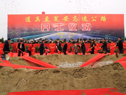 11月23日,四航局聯(lián)合路橋建設(shè)、二公院以BOT+EPC模式投資建設(shè)的貴州省道真至甕安高速公路開工儀式在遵義市正安縣隆重舉行,貴州省委、省政府對(duì)項(xiàng)目開工建設(shè)發(fā)來(lái)賀信。
