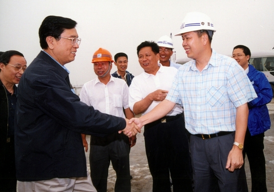 2004年5月19日,中共中央政治局委員、廣東省委書記張德江在省委常委、廣州市委書記林樹森,省委常委、秘書長肖志恒和廣州市委副書記、市長張廣寧等領(lǐng)導(dǎo)陪同下,到南沙開發(fā)區(qū)考察,并親臨由我局參與建設(shè)的南沙港一期工程施工現(xiàn)場視察,詳細(xì)了解南沙港區(qū)的建設(shè)情況。他與我局局長陳奮健親切握手,勉勵我局等參建單位把南沙港建設(shè)好。