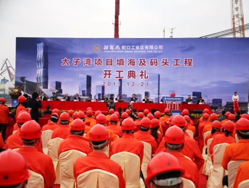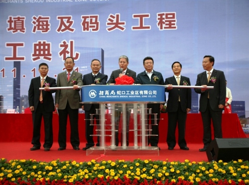 12月21日,蛇口工業(yè)區(qū)太子港項(xiàng)目填海及碼頭工程開(kāi)工典禮在深圳蛇口港隆重舉行。 中交股份總裁劉起濤、副總裁陳云,招商局集團(tuán)總裁李建紅,蛇口工業(yè)區(qū)有限公司總經(jīng)理?xiàng)钐炱?,四航局總?jīng)理孫國(guó)強(qiáng)等出席儀式。招商局董事長(zhǎng)傅育寧宣布項(xiàng)目開(kāi)工,副總裁孫承銘主持開(kāi)工典禮。中交股份總裁劉起濤、副總裁陳云、招商局董事長(zhǎng)傅育寧、四航局總經(jīng)理孫國(guó)強(qiáng)等領(lǐng)導(dǎo)推動(dòng)“推桿”,共同啟動(dòng)開(kāi)工儀式。