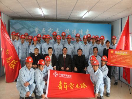 在珠海澳大隧道項(xiàng)目部,張猛勉勵(lì)項(xiàng)目部團(tuán)員青年珍惜參與澳大隧道工程建設(shè)的機(jī)遇,增強(qiáng)使命感,自覺擔(dān)負(fù)起時(shí)代賦予的神圣使命,大力弘揚(yáng)“艱苦創(chuàng)業(yè)、崇尚實(shí)干、善于學(xué)習(xí),銳意創(chuàng)新、團(tuán)結(jié)奉獻(xiàn)、爭(zhēng)創(chuàng)一流”的青年突擊隊(duì)精神,努力奮斗、奮力拼搏,創(chuàng)造出無(wú)愧于時(shí)代、無(wú)愧于青春、無(wú)愧于“青年突擊隊(duì)”這個(gè)光榮稱號(hào)的驕人成績(jī)。他要求項(xiàng)目部切實(shí)找準(zhǔn)結(jié)合點(diǎn)、落實(shí)著力點(diǎn)、把握控制點(diǎn),注重選樹和宣傳先進(jìn)典型,依照四航局和一公司創(chuàng)建青年文明號(hào)的規(guī)章制度,把握過(guò)程,加強(qiáng)控制,總結(jié)推廣經(jīng)驗(yàn),以堅(jiān)定的決心和毅力向澳門同胞交出一份滿意的答卷。