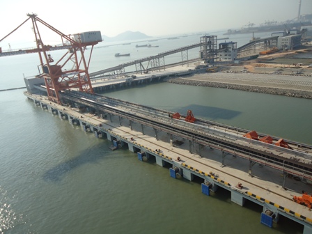 高欄港15萬噸級(jí)干散貨碼頭是珠海實(shí)施"以港興市"戰(zhàn)略的重大項(xiàng)目,也是廣東省重點(diǎn)項(xiàng)目之一。自2010年9月碼頭樁基施工開始,到碼頭1號(hào)泊位投產(chǎn)運(yùn)行,僅用了15個(gè)多月的時(shí)間。在碼頭建設(shè)過程中,項(xiàng)目部始終認(rèn)真貫徹“科學(xué)計(jì)劃,強(qiáng)化執(zhí)行,優(yōu)質(zhì)高效,后墻不倒”的工程建設(shè)十六字方針,精心策劃,合理組織,高效施工,克服工期緊、施工現(xiàn)場(chǎng)交叉作業(yè)多等方面不利因素,安全、優(yōu)質(zhì)、按期順利完成了各個(gè)節(jié)點(diǎn),確保了干散貨碼頭的順利投產(chǎn)試運(yùn)行,得到業(yè)主的高度贊揚(yáng)。
