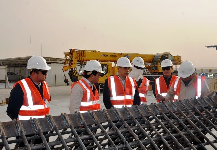呂衛(wèi)清一行聽取了多哈新港項目工程簡介及施工進展、技術(shù)管理、QC/QA及HSE等各項工作的情況匯報,參觀了項目施工現(xiàn)場,深入了解各分項工程施工工藝中的重點、難點問題,對工程計算和實驗工作給予指導(dǎo),并與技術(shù)人員進行了充分的研究討論,給予重要的指導(dǎo)性意見。