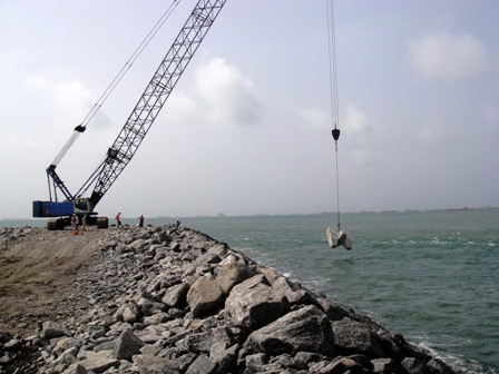 尼日利亞項(xiàng)目東堤扭王塊開始安裝