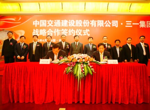 4月23日,中國(guó)交通建設(shè)股份有限公司與三一集團(tuán)有限公司戰(zhàn)略合作簽約儀式在湖南長(zhǎng)沙舉行。