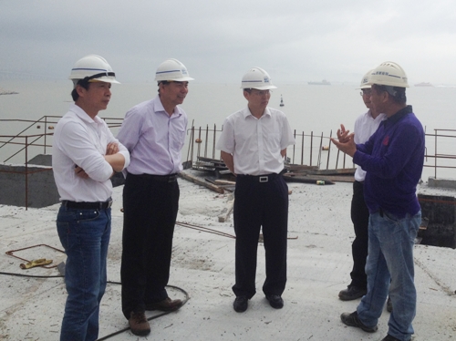 日前,四航局總經(jīng)理孫國強在澳門振華工程部謝偉強經(jīng)理的陪同下,到澳門氹仔新碼頭項目部檢查指導(dǎo)工作。
