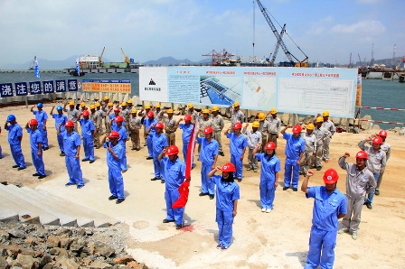 5月24日,珠海神華項(xiàng)目部在珠海高欄港隆重舉行青年突擊隊(duì)授旗儀式。四航局黨委副書記、紀(jì)委書記、工會(huì)主席張猛,四航局團(tuán)委書記江雄,二公司黨委副書記、副總經(jīng)理?xiàng)顒P等領(lǐng)導(dǎo)出席授旗儀式。