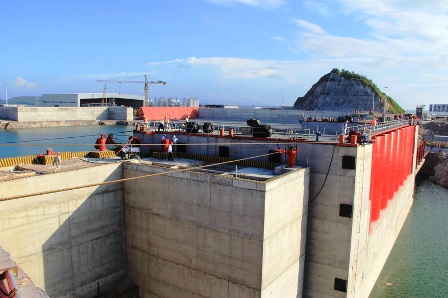 5月25日,港珠澳大橋島隧項目部塢門安裝組全體人員經(jīng)過12個小時的持續(xù)奮戰(zhàn),順利完成深塢塢門安裝典型施工。