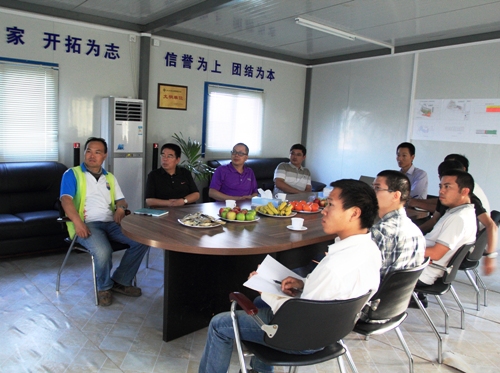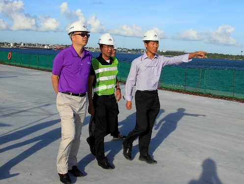 陳奮健深入?yún)⒂^了施工現(xiàn)場(chǎng)并慰問了項(xiàng)目員工,在項(xiàng)目駐地聽取了項(xiàng)目負(fù)責(zé)人關(guān)于項(xiàng)目概況、項(xiàng)目管理和當(dāng)?shù)厥袌?chǎng)前景分析的匯報(bào)。他對(duì)項(xiàng)目部既做好現(xiàn)場(chǎng)施工管理又關(guān)注市場(chǎng)開發(fā)的理念表示贊許,評(píng)價(jià)19號(hào)泊位項(xiàng)目整體上做得不錯(cuò),并針對(duì)項(xiàng)目工序、質(zhì)量、安全等提出了要求,同時(shí)勉勵(lì)一公司積極響應(yīng)和跟隨中交集團(tuán)"走出去"戰(zhàn)略,在海外市場(chǎng)尋找到嶄新定位,謀求長(zhǎng)遠(yuǎn)發(fā)展。陳奮健強(qiáng)調(diào),中國(guó)路橋應(yīng)和四航局、四航院等單位通力合作,對(duì)當(dāng)?shù)厥袌?chǎng)潛在的大型基建項(xiàng)目進(jìn)行前期勘察和規(guī)劃,及早切入,必要時(shí)幫助當(dāng)?shù)卣拖嚓P(guān)單位理清思路,推動(dòng)雙方合作共贏。