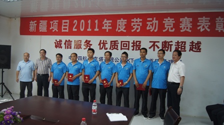 又訊 7月20日,新疆項目部召開2011年度勞動競賽表彰大會。廣東省總工會黨組成員、紀(jì)檢組長廖汝捷,廣東省海員工會主席康盛忠、副主席周士超,廣州海員俱樂部主任鄒偉光,四航局黨委副書記張猛,四航局高級顧問肖干生,四航局一公司黨委書記陳國良等領(lǐng)導(dǎo)出席會議,并分別為先進集體、先進個人頒發(fā)榮譽證書。