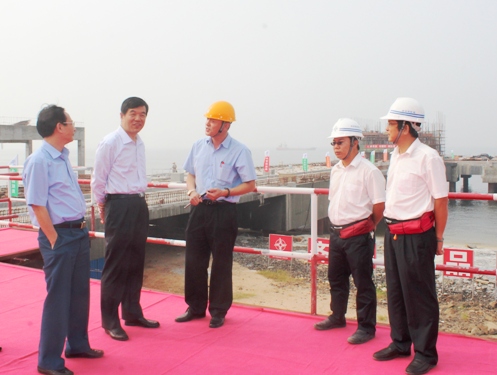 10月10日,寶鋼集團(tuán)有限公司副總經(jīng)理戴志浩、寶鋼湛江鋼鐵有限公司副總經(jīng)理彭俊湘一行到湛江鋼鐵基地30萬(wàn)噸級(jí)大型散貨碼頭考察施工情況。