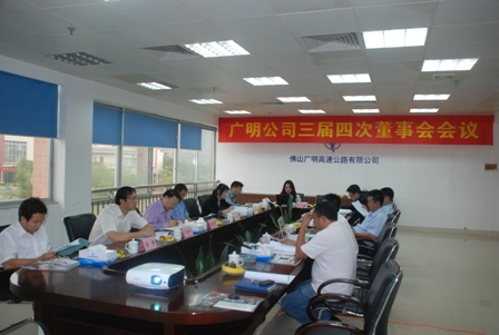 會議審議并通過了廣明公司《2011年度及2012年1-3季度運營管理工作報告》、《2011年度及2012年1-3季度財務(wù)工作報告》、廣明公司2012年度經(jīng)營目標(biāo)和給予爭取收費年限延長相關(guān)人員獎勵及聘任經(jīng)營管理人員的議案,通報了廣明公司經(jīng)營層2011年度經(jīng)營目標(biāo)責(zé)任考核情況,并就廣明公司“十二五”發(fā)展規(guī)劃、廣明高速公路(西樵至更樓段)竣工驗收問題、廣明高速公路延長線更合東收費站建設(shè)問題進行了研究和討論。