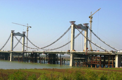 安徽蚌埠淮河公路橋纜索體系轉(zhuǎn)換提前完成