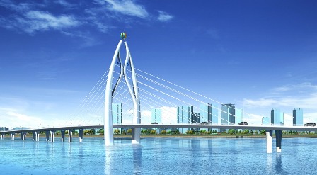 該工程位于漳州招商局開發(fā)區(qū)南炮臺(tái)附近,是完善雙魚島及漳州開發(fā)區(qū)路網(wǎng)規(guī)劃,滿足雙魚島與附近陸域連接的重要配套設(shè)施。雙魚島為國內(nèi)首座大型離岸式生態(tài)人工島,陸島連接橋建成后,不僅為雙魚島提供更加快速、便捷的過海通道,并且將進(jìn)一步改善漳州開發(fā)區(qū)及廈門港區(qū)的交通網(wǎng)絡(luò)。該橋梁為海上斜拉橋工程,包括陸島連接橋的主橋、引橋及主橋、引橋上的給水、電力管線工程及陸島連接橋的景觀、路燈工程,路線全長1010.8米。