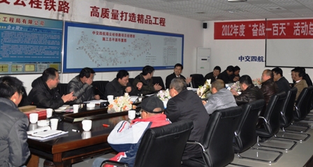 1月7日,四航局云桂鐵路項目召開2012年度“奮戰(zhàn)一百天”活動總結暨先進表彰大會。四航局副總經(jīng)理黃煥謙、副總工程師顧剛,項目各分部及受表彰的先進個人等共40余人參加。