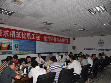 隨后,孫國強一行在云桂鐵路項目部會議室聽取了各分部、各參建子公司總經(jīng)理和項目部就目前施工生產(chǎn)情況、存在困難、施工生產(chǎn)計劃和需要解決的問題等情況的匯報。 孫國強在會上作了重要指示。他指出此行目的:一要落實公司工作會議的要求,重視項目管理基層工作;二要與云桂公司建立良好的溝通機制,為項目建設創(chuàng)造良好的環(huán)境;三是各參建子公司要加強對分部的支持,以此推動云桂鐵路項目更好的建設。他提到目前項目建設存在的問題:一、安全、質(zhì)量還沒有完全受控;二、不夠重視關鍵線路的施工;三、沒有完全編制完成關鍵線路的技術方案;四、由于計量方面的工作造成現(xiàn)場現(xiàn)金流出現(xiàn)壓力。
