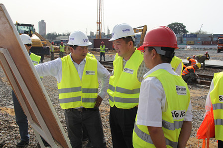 6月10日,四航局董事長(zhǎng)、黨委書(shū)記梁卓仁到中港公司總承包、二公司承建的幾內(nèi)亞科納克里項(xiàng)目視察指導(dǎo)工作。