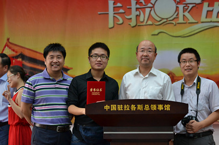 座談會(huì)后,總領(lǐng)館還舉辦了中資企業(yè)歌詠比賽,中港尼辦和項(xiàng)目部組成的中港尼日利亞團(tuán)隊(duì)榮獲歌詠比賽二等獎(jiǎng),劉總領(lǐng)事與獲獎(jiǎng)團(tuán)隊(duì)合影并留念。