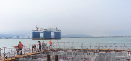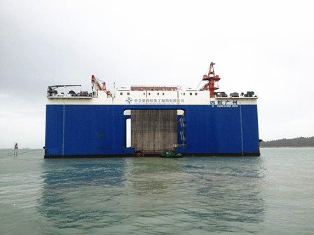 五公司羅嶼項(xiàng)目部首件沉箱出運(yùn)安裝