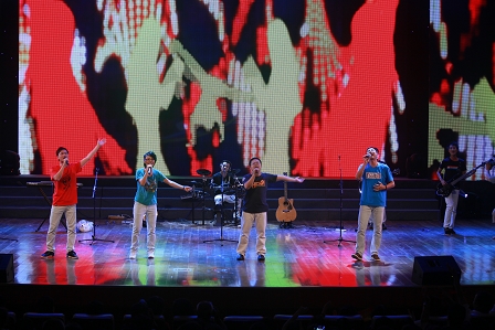 本臺晚會節(jié)目由四航局員工自編自演,精彩紛呈,催人奮進。在即興環(huán)節(jié),四航局總經理孫國強還為當天生日在晚會現場的員工送上精美禮物和祝福。演出中,一公司的情景劇《走進非洲》,二公司的詩樂舞《同心共筑中交夢》、男聲獨唱《跟你走》和《小白楊》、達人樂隊《兄弟干杯》和《我相信》,三公司的歌伴舞《這片海有我》,五公司的詩朗誦《舞動夢想》,航通公司的說唱《航通人,四航情》,研究院雙職工夫妻對唱《相親相愛的一家人》,廣明延長線的武術表演,四航局本部的小品《生日祝福》,以及歌舞《輝煌四航》和《美麗中國》等節(jié)目,表達了四航人傳承優(yōu)秀四航文化、攜手同心筑夢的情懷和心聲,贏得了觀眾的陣陣掌聲和喝彩。