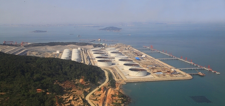 該工程2010年11月23日開工,設(shè)計年吞吐量為917萬噸,主要承擔(dān)原料油、汽油、柴油等裝卸任務(wù)。3—6號泊位碼頭和引橋由工作平臺、系纜墩、鋼便橋等組成,總岸線長度為1150米,工作平臺均通過單引橋同后方罐區(qū)連接,采用高樁梁板結(jié)構(gòu);建筑工程包括消控樓、3號與6號配電間等。