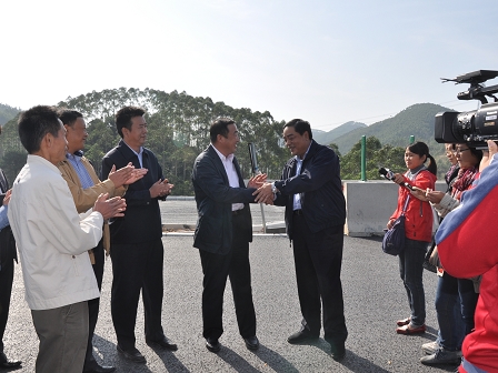 11月26日,四航局董事長、黨委書記梁卓仁與高明區(qū)委書記譚偉平一行到廣明高速公路延長線視察指導工作。