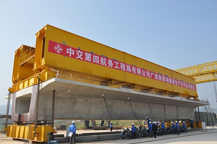 12月5日,鐵道部鐵路產(chǎn)品審查部審查組組長吳國琦宣布:中交四航局云桂鐵路廣南制梁場順利通過《時(shí)速250公里客運(yùn)專線鐵路后張法預(yù)應(yīng)力混凝土簡支箱梁國家生產(chǎn)許可》的審查。