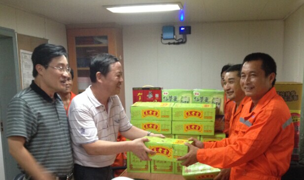 同日,張猛在五公司黨委負(fù)責(zé)人陪同下,到五公司福州地鐵項目籌備組和可門項目指導(dǎo)慰問,聽取了項目部工作推進(jìn)及工會建設(shè)等情況的匯報,考察了項目現(xiàn)場,對兩項目有關(guān)工作提出了指導(dǎo)要求。在可門項目,張猛代表四航局工會向一線工人和“四航廣州號”船員送去了清涼飲料。