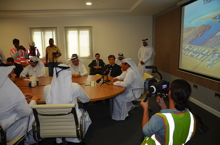 阿卜杜拉首相一行聽取了關(guān)于新港項(xiàng)目執(zhí)行情況的匯報(bào),深入視察了項(xiàng)目現(xiàn)場,對(duì)多哈新港項(xiàng)目各項(xiàng)管理工作表示滿意,對(duì)項(xiàng)目投入的優(yōu)質(zhì)資源、出色的現(xiàn)場執(zhí)行能力和階段性履約成果給予肯定和贊賞。阿卜杜拉首相希望多哈新港項(xiàng)目部在確保安全和質(zhì)量的前提下按期圓滿完成建設(shè)任務(wù),為卡塔爾2014年國慶節(jié)獻(xiàn)上一份大禮。