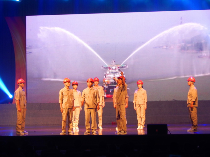 晚會(huì)上,航通船業(yè)10名青年員工表演了說唱節(jié)目《開啟夢想新航程》,以航通員工大海從一名技術(shù)員成長為企業(yè)總工的經(jīng)歷為主線,以航通船業(yè)發(fā)展歷程為依托,形象展現(xiàn)了航通人誠信務(wù)實(shí)、拼搏奮斗的精神面貌,獲得在場企業(yè)職工觀眾熱烈掌聲。